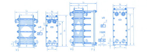 | 換熱面積 | 板片數(shù) | L1 | l2 | l3 | A1 | A2 | A3 | H1 | H2 | H3 | B1 | B2 | R | a | D | DN | 工作壓力 MPA | 質(zhì)量 Kg |
